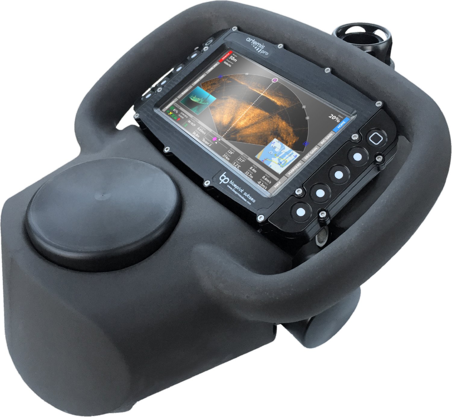 ARTEMIS PRO潛水員導航定位系統 是一款手持式水下導航定位系統,集成了目標探測多波束聲吶,DVL,相機,潛水燈,聲學定位,數據調制解調器和GNSS導航設備,旨在幫助潛水員在水下進行海床勘測和海底物體定位。