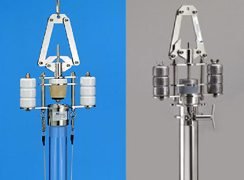 纜繩操作的 Kajak 柱狀采泥器的取樣管體可以更換成一根帶推桿的取樣管,通過手工將取樣管插入底質(zhì)。推桿由 AISI 316 不銹鋼制成,長 2 米。它們可與伸縮桿組合,長度可達(dá) 4 或 6 米。增加頂端配重鉛塊(13.310)(至多增加 12 塊,0.65kg/塊,共 7.8kg),可以增加采泥器的穿透效果。標(biāo)準(zhǔn)配置帶 6 塊。